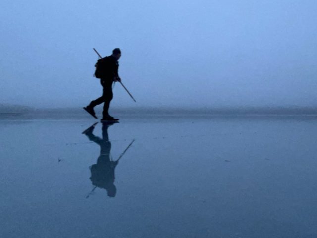 Спасибо за разведку и трек первопроходцам озера Волоярви сезона 2025-2026 Сергею и Евгению. Сегодня, 2025-11-29, лёд на Волоярви весьма истончился. Более-менее надежный 5~8 см лёд в смеси талого и замёрзшего снега и дождевой воды на поверхности льда мы нашли на севере Волоярви, но и этот лёд на температуре +2°С быстро деградировал. Эти зеркальные полуводные 11 км — это наше ЛФК открытие сезона. В четверть марафоне принимали участие только подготовленные Nordic Skaters. Без происшествий.