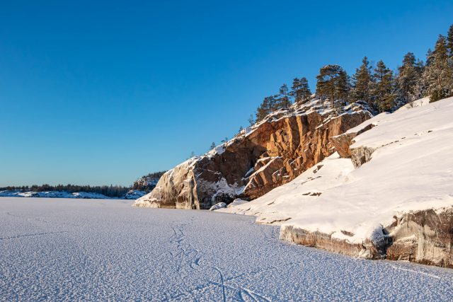 Да, снег с неё сдуло, и толщина льда 5+ см позволила нам совершить прокат. Так как был сильный ветер, решили ехать против него пока свежие силы. Лёд всё не кончался, тянулся в сторону Дамбы ,уходя в горизонт.