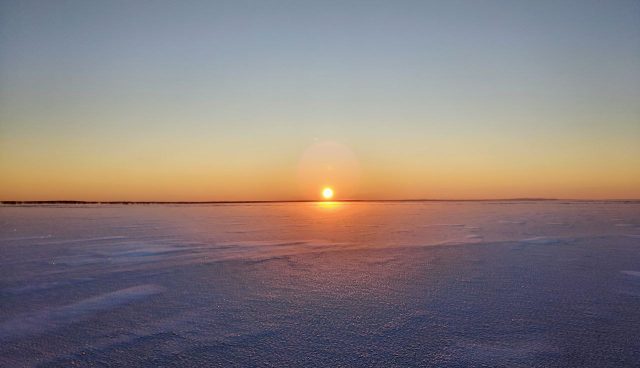 Проводили девчат на обратный поезд в Москву и вдвоем ещё прокатились небольшой кружок на закате по ледяному полю за АЭС.