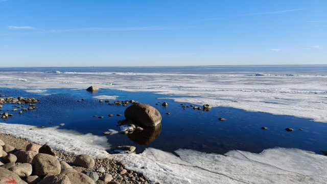 Нам с Ромой хотелось посмотреть и сам берег, где мы ещё не были, т.к с трассы сюда попасть непросто — берег в этом районе застроен закрытыми коттеджными посёлками. Местами вдоль побережья нам встречались классные променады с асфальтом и качелями, местами мы шли по припаю, местами по песку побережья. Нам хотелось глазами оценить состояние льда в эту сторону, куда утром по времени мы не успевали, т.к верхний слой льда с 12 дня начинал быстро размягчаться.