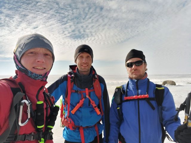 На следующий день Паша, Женя и Саша решили повторить наш маршрут, но ночной сильный ветер и дневные температуры в +10 образовали значительные по ширине трещины, которые ребята не смогли проехать уже даже рано утром.