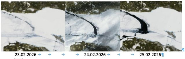 И для сравнения динамика Флотских льдов 23-24-25.02.26: